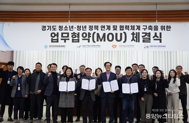 (중앙뉴스타임스 = 방재영 기자) 수원시청소년청년재단은 12일 경기도미래세대재단, 성남시청소년청년재단, 시흥시청소년청년재단과 함께 ‘경기도 청년 정책 연계 및 협력체계 구축을 위한 업무협약’을 체결했다.