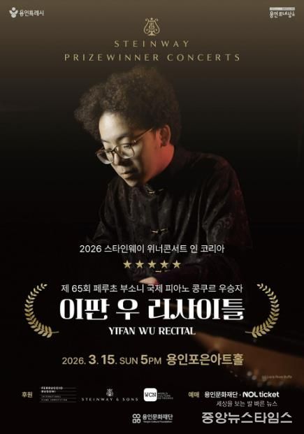 (중앙뉴스타임스 = 이광운 기자) 용인문화재단은 오는 3월 15일 오후 5시, 용인포은아트홀에서 ‘2026 스타인웨이 위너콘서트 – 이판 우 리사이틀’을 개최한다고 밝혔다.