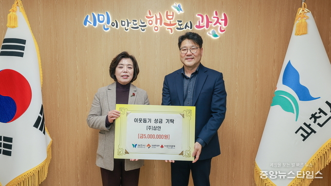 (중앙뉴스타임스 = 방재영 기자) 과천시는 13일 관내 기업 ㈜삼안(대표 최동식)이 설 명절을 앞두고 이웃돕기 성금 500만 원을 기탁했다고 밝혔다.