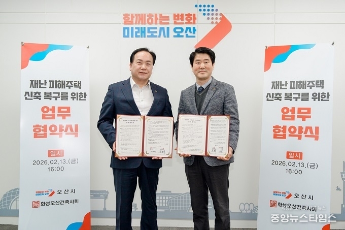 이권재 오산시장은 “재난 피해 주민의 조속한 일상 회복을 위해 주거 안정이 무엇보다 중요하다”며 “이번 협약을 통해 피해주택 복구가 원활히 이뤄질 수 있도록 행정적 지원에 힘쓰겠다”고 말했다.