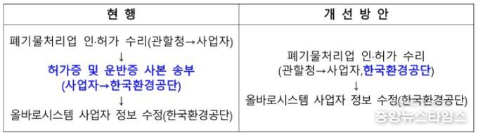 그동안 폐기물처리업 인허가(변경)가 이루어질 경우, 사업자가 직접 허가증 사본을 한국환경공단에 제출해 올바로시스템 변경을 요청해야 하는 번거로운 절차가 있었으며, 이로 인해 폐기물 처리 지연이나 정보 불일치 등의 문제가 발생하기도 했다.