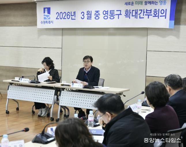(중앙뉴스타임스 = 방재영 기자) 수원특례시 영통구는 지난 24일, 구청 상황실에서 ‘2026년 3월 확대간부회의’를 개최하고, 구정 주요 현안을 집중 점검했다.