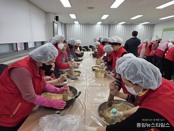 이번 사업은 구월2동 통장자율회 회원 48명이 진행한 것으로 콩을 직접 불리고 삶아 방망이로 찧는 등 정성을 가득 담았다.