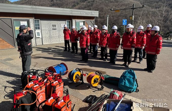 2월 24일에는 초막골생태공원 내 생태교육실에서 산불·산사태·병해충 대응 관련 이론 교육을 실시하고, 이튿날인 25일에는 에덴기도원(속달동 소재) 인근 능선에서 다양한 산림 재난을 현장에서 선제적으로 대응할 수 있는 현장 실습 교육을 병행했다.