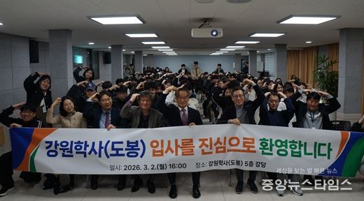 (중앙뉴스타임스 = 방재영 기자) 강원인재원은 3월 2일 오후, 서울 관악 및 도봉학사에서 ‘2026년도 강원학사 신입사생 입사식’을 개최했다.