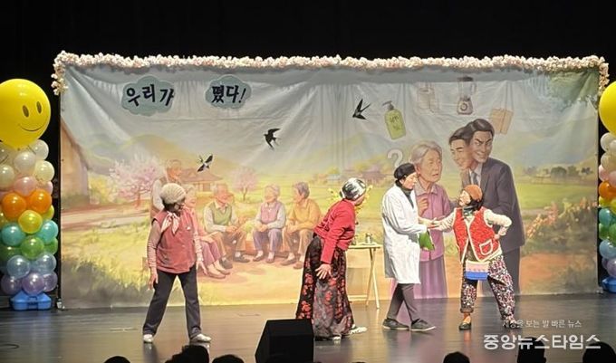 (중앙뉴스타임스 = 방재영 기자) 여주 시니어클럽 ‘실버드림극단’이 지난 2월 27일 세종국악당에서 떴다방 피해 예방을 위한 공연'이놈아!우리가떴다'을 선보였다.