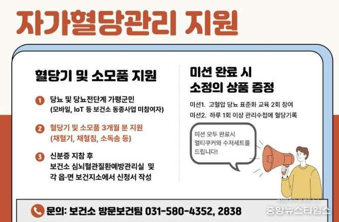 (중앙뉴스타임스 = 방재영 기자) 가평군보건소가 당뇨병 예방과 체계적인 관리를 돕기 위한 자가혈당 관리 지원사업을 본격 추진한다.