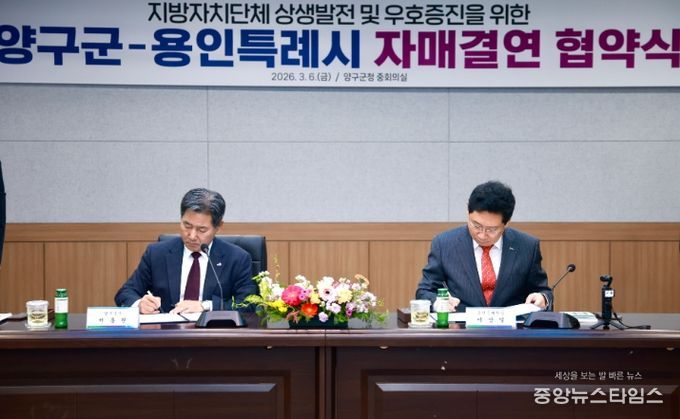(중앙뉴스타임스 = 방재영 기자) 용인특례시는 6일 강원특별자치도 양구군과 자매결연을 하고, 두 도시의 교류와 발전을 위해 적극 협력하기로 했다.