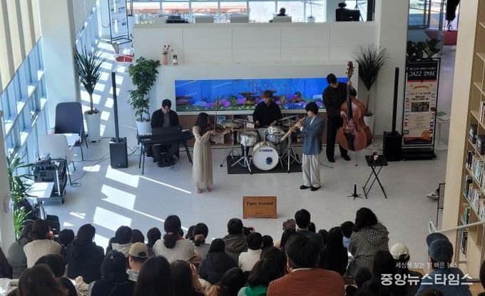 (중앙뉴스타임스 = 이광운 기자) 오산시는 지난 7일 청학도서관 1층 커뮤니티스테어에서 열린 재개관 기념 공연 ‘2026 음악이 흐르는 도서관 콘서트 – 재즈&북(Book)의 향연: JAZZ VIBE’가 시민들의 큰 호응 속에 성황리에 마무리됐다고 밝혔다.