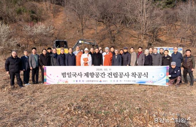 이날 착공 법회에는 김홍규 강릉시장을 비롯해 범일국사 선양회 회장을 맡고 있는 등명낙가사 주지 청우 스님과 범일국사선양회원 등 관계자 약 80명이 참석한 가운데 진행됐다.