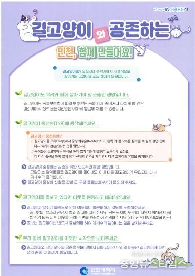 (중앙뉴스타임스 = 방재영 기자) 인천 계양구는 길고양이로 인한 소음, 쓰레기봉투 훼손 등으로 발생하는 주민 갈등을 완화하고 동물 학대를 예방하기 위해 2026년 길고양이 중성화 수술(TNR) 지원사업을 추진한다고 13일 밝혔다.