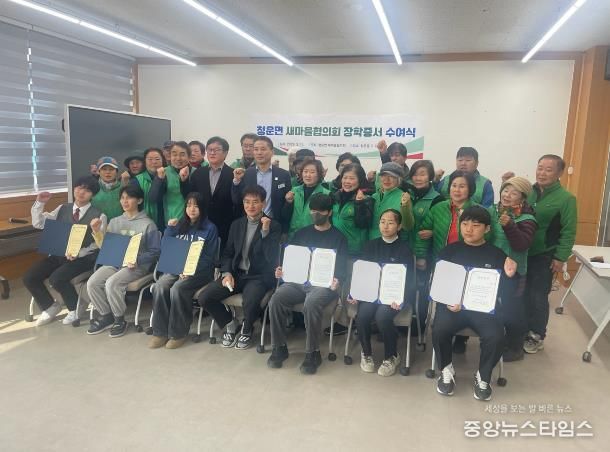 특히 이번 장학금은 청운면 새마을지회가 농촌 폐비닐 수거와 나눔 장터 운영 등 다양한 활동을 통해 마련한 재원으로, 지역사회 나눔의 의미를 더했다.