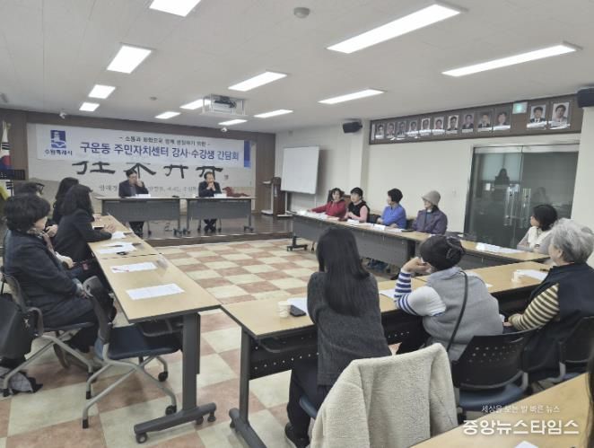 (중앙뉴스타임스 = 방재영 기자) 수원시 권선구 구운동 행정복지센터는 지난 17일, 주민자치센터에서 프로그램 강사와 수강생이 참여하는 소통 간담회를 개최했다.