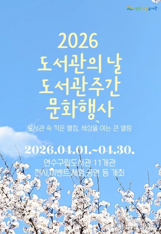 (중앙뉴스타임스 = 방재영 기자) 인천 연수구립도서관은 도서관 주간을 맞아 4월 한 달 동안 ‘도서관 속 작은 펼침, 세상을 여는 큰 열림’을 주제로 다양한 독서 문화 행사를 개최한다고 18일 밝혔다.