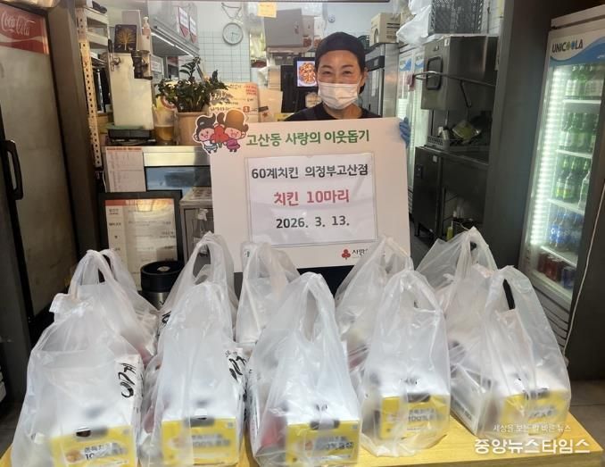 60계치킨 의정부고산점은 지난 연말 기부에 이어, 올해도 치킨을 전달하며 지역사회를 위한 따뜻한 나눔을 이어가고 있다. 기탁된 치킨은 저소득 독거노인 등 취약계층 10가구에 전달됐다.