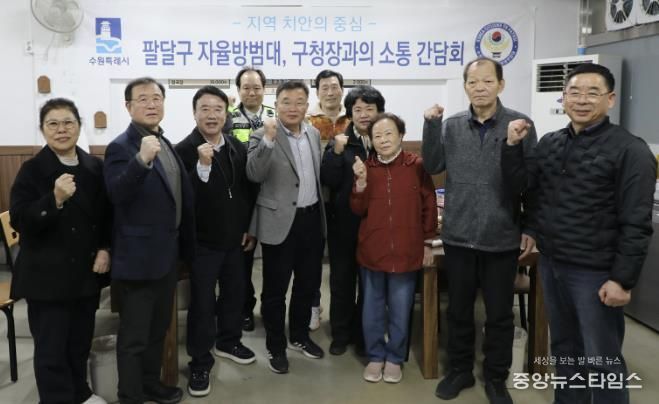 이번 간담회는 경찰과 지자체의 행정력이 미치기 어려운 야간 시간대 취약지역을 순찰하며 팔달구민의 안전을 지켜온 자율방범대의 헌신에 감사의 마음을 전하고, 현장에서 느끼는 애로사항과 건의 사항을 직접 청취하기 위해 마련됐다.