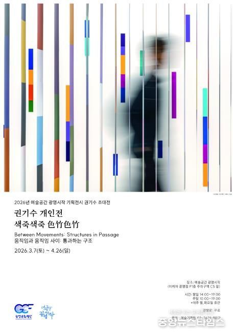 (중앙뉴스타임스 = 이광운 기자) (재)광명문화재단은 3월 7일부터 4월 26일까지 이케아 광명점 내 위치한 ‘예술공간 광명시작’에서 권기수 작가 초대전 《색죽색죽(色竹色竹) Between Movements: Structures in Passage '움직임과 움직임 사이'》를 개최한다.