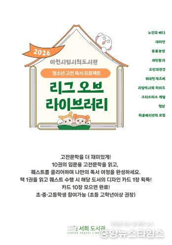 이번 프로그램은 2025년 이천시 독서문화브랜드 ‘이천이책’ 사업의 일환으로 운영됐던 청소년 독서 챌린지 ‘리그 오브 라이브러리’의 성과를 바탕으로, 운영 주체를 서희도서관으로 전환하여 지속 추진하는 사업이다.