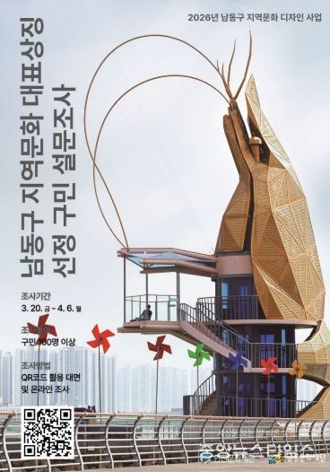 (중앙뉴스타임스 = 방재영 기자) 인천문화재단과 남동문화재단이 ‘2026년 남동구 지역문화 디자인 사업’의 일환으로 남동구를 대표할 상징 5건 선정을 위한 구민 설문조사를 오는 3월 20일부터 4월 6일까지 진행한다.