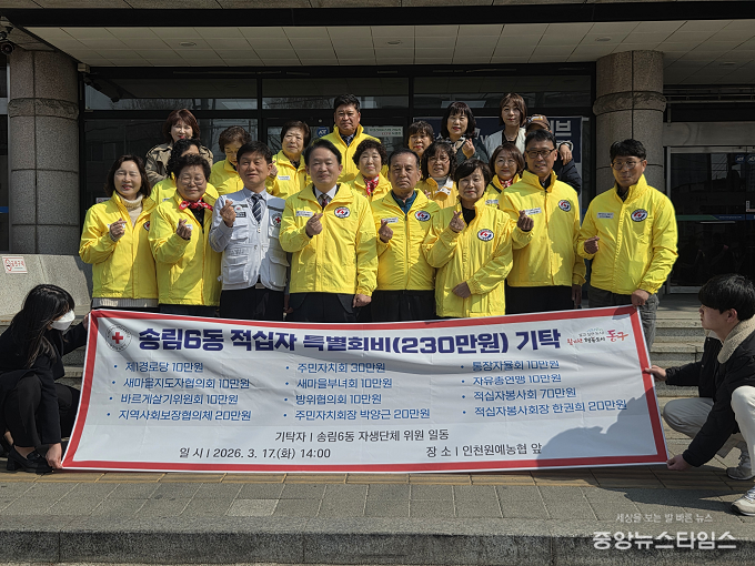 (중앙뉴스타임스 = 방재영 기자) 인천 동구 송림6동은 지난 17일 송림6동 적십자봉사회(회장 한권희) 주관으로 ‘적십자 특별회비 기탁식’을 개최했다고 밝혔다.