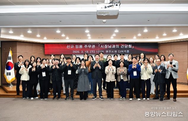 (중앙뉴스타임스 = 방재영 기자) 원주시는 신규 임용 직원들의 공직사회 적응을 돕고, 시정 운영 방향에 대한 이해를 높이기 위해 시장과의 간담회를 실시했다.