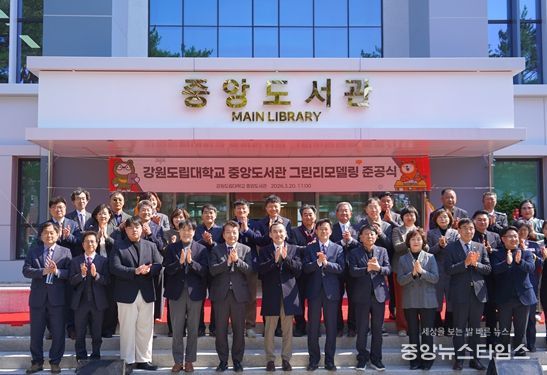 (중앙뉴스타임스 = 방재영 기자) 강원도립대학교는 20일 오전 11시, 대학 내 중앙도서관에서 ‘중앙도서관 그린리모델링 준공식’을 개최하고, 친환경 스마트 교육 환경을 기반으로 한 지역 상생 복합문화공간의 본격적인 운영을 알렸다.