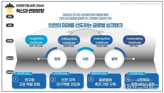 먼저, 「인천연구원 비전 2040」을 통해 “인천의 미래를 선도하는 글로벌 싱크탱크”로의 도약을 선포할 예정이다.