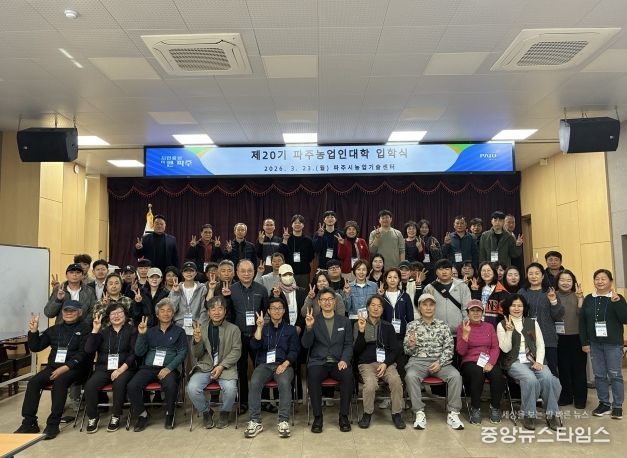 (중앙뉴스타임스 = 방재영 기자) 파주시는 지난 23일 파주시농업기술센터에서 신입생과 관계자 등 70여 명이 참석한 가운데, 미래 농업을 이끌어갈 정예 인재들의 힘찬 출발을 알리는 '2026년 파주농업인대학 입학식’을 개최했다.