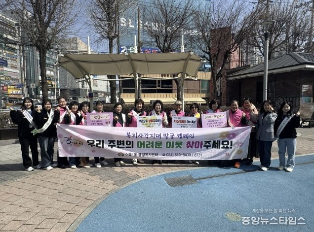 (중앙뉴스타임스 = 방재영 기자) 구리시 수택1동은 3월 23일, 지역 내 복지 사각지대 해소와 생명 존중 문화 확산을 위해 복지 사각지대 발굴 활동과 자살 예방 홍보 운동을 함께 추진했다.