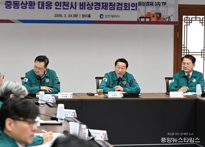 (중앙뉴스타임스 = 방재영 기자) 인천시는 중동 전쟁 장기화에 따른 지역경제 피해를 최소화하고 선제적인 대응 방안을 논의하기 위해 유정복 시장이 직접 주재하는‘비상경제 점검회의’를 지난 12일에 이어 24일 아침 시청 본관 장미홀에서 개최했다고 밝혔다.