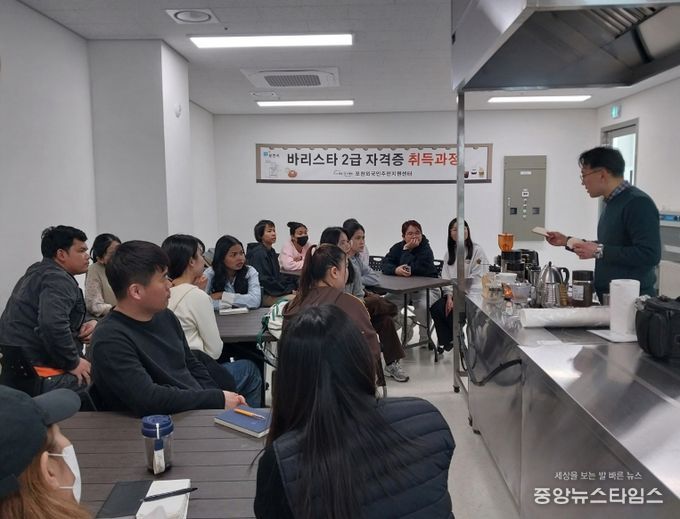 (중앙뉴스타임스 = 방재영 기자) 포천시는 지난 21일 외국인주민의 안정적인 지역사회 정착과 취업 역량 강화를 위한 ‘바리스타 2급 자격증 취득과정’을 개설하고 첫 수업을 진행했다.