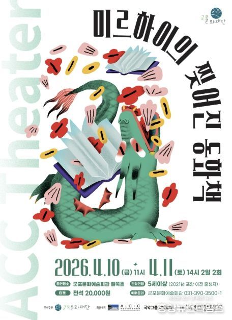 (중앙뉴스타임스 = 방재영 기자) 군포문화재단은 어린이와 가족이 함께 관람할 수 있는 공연 '미르하이의 찢어진 동화책'을 4월 10일~11일 군포문화예술회관 철쭉홀에서 개최한다고 밝혔다. 이번 공연은 2026 국립아시아문화전당재단 어린이 공연 유통 공모사업의 일환으로, 국립아시아문화전당(ACC) 창·제작 어린이 공연을 지역에 소개하기 위해 마련됐다.