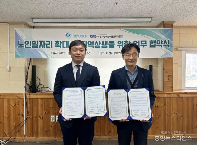 (중앙뉴스타임스 = 방재영 기자) 이천시는 이천시니어클럽이 2026년 신규 노인일자리 사업으로 장애인 지원 사업을 추진하고, 23일 이천시장애인재활근로작업장과 업무협약을 체결했다고 밝혔다.