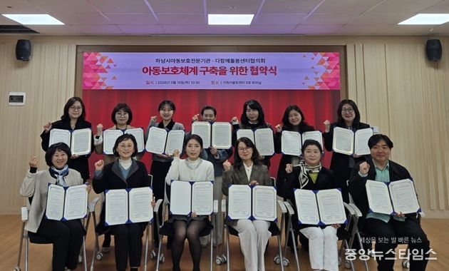 하남시가족어울림센터 5층 회의실에서 진행된 이번 협약식은 하남시다함께돌봄센터협의회 회장을 비롯한 하남시 관내 13개 다함께돌봄센터 센터장이 참여한 가운데, 하남시 아동학대 예방 체계 강화와 협력 방안을 논의했다.