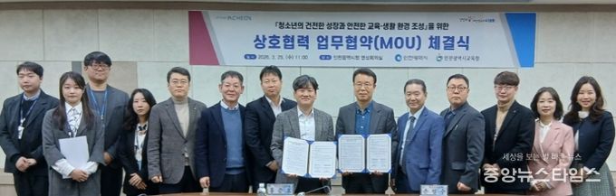 (중앙뉴스타임스 = 방재영 기자) 인천시교육청은 25일 인천시청과 청소년의 건강한 성장과 안전한 교육환경 조성을 위한 업무협약을 체결했다.