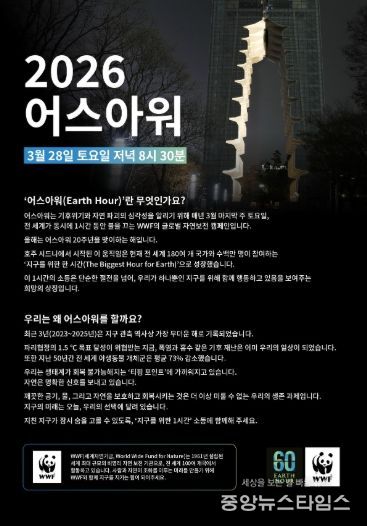 한편, 어스아워는 2007년 호주 시드니에서 시작돼 현재 190여 개 국가가 참여하는 글로벌 캠페인이다. 전 세계 누구든지 한 시간 동안 불필요한 전등을 끄는 방식으로 어스아워에 참여할 수 있다.