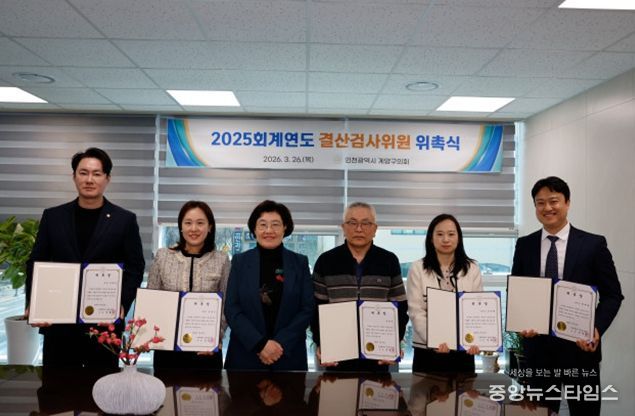 (중앙뉴스타임스 = 방재영 기자) 인천 계양구의회는 26일 2025회계연도 결산검사위원으로 선임된 5명에게 위촉장을 수여했다.