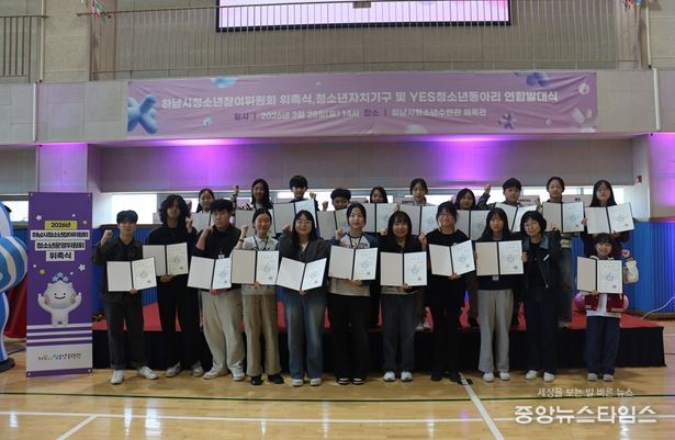 (중앙뉴스타임스 = 방재영 기자) 하남시청소년수련관은 지난 28일 청소년수련관 체육관에서 청소년자치기구 및 동아리 소속 청소년들이 참석한 가운데 ‘2026 하남시청소년참여위원회 위촉식 및 청소년자치기구·동아리 연합 발대식’을 성황리에 개최했다고 밝혔다.
