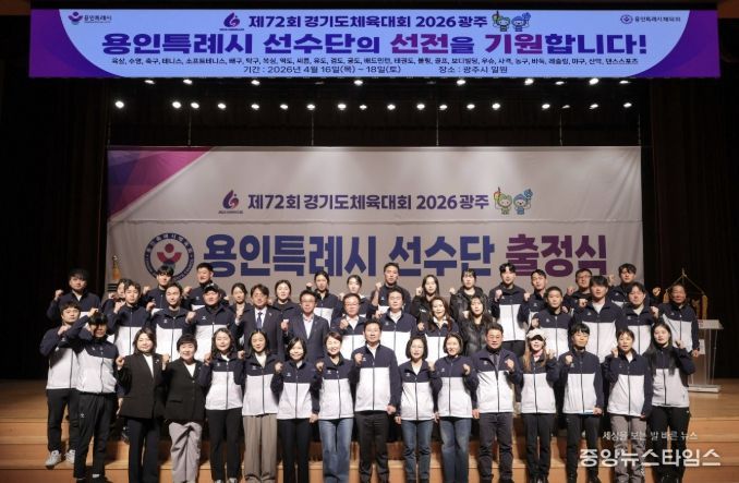 (중앙뉴스타임스 = 이광운 기자) 용인특례시는 30일 시청 에이스홀에서 ‘제72회 경기도체육대회 2026 광주’에 참가하는 선수단 출정식을 개최했다.