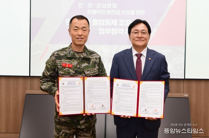 강화군은 3월 31일(화) 오전 10시 30분, 해병대 제2사단에서 민북지역 출입통제 체계 개선을 위한 업무협약을 체결했다. 이날 협약식에는 박용철 강화군수와 최영길 해병대 제2사단장이 참석해 협약서에 서명하며 양 기관 간 협력 체계를 공식화했다.