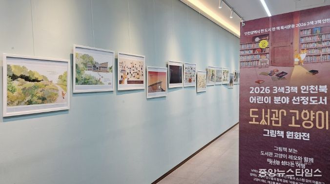 (중앙뉴스타임스 = 방재영 기자) 인천시교육청신트리도서관은 인천도서관이 추진하는 '2026 3색3책 인천북 ‘도서관 고양이’ 원화 순회전시' 공모 사업에 선정되어, 오는 26일까지 원화 전시를 운영한다고 1일 밝혔다.