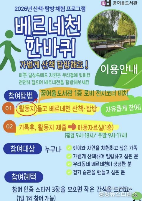 4월에는 수주도서관이 ‘이야기가 있는 마을’을 주제로 골목 드로잉 프로그램을 운영하고, 꿈여울도서관은 베르네천 하천 탐방과 생태 세밀화 그리기를 진행한다. 역곡도서관은 ‘역곡동의 사계’ 사진전과 숲 생태 프로그램을 운영하며, 원미도서관은 청년 대상 정신건강 카드뉴스를 제공하는 ‘부천 청년 멘탈 지키미’ 서비스를 운영한다.
