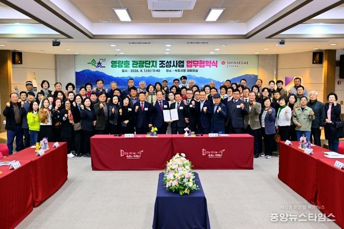 (중앙뉴스타임스 = 방재영 기자) 속초시는 2026년 4월 1일 시청 대회의실에서 영랑호 관광단지 조성사업의 성공적인 추진을 위해 민간사업자인 ㈜신세계센트럴과 업무협약을 체결했다.