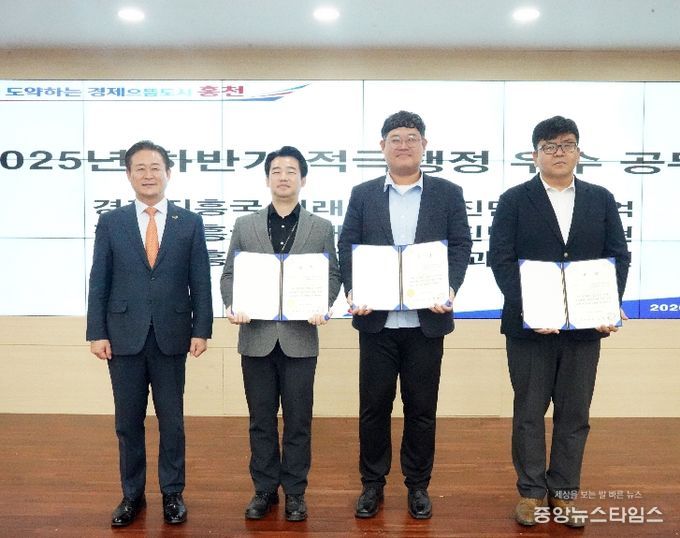 (중앙뉴스타임스 = 방재영 기자) 홍천군은 4월 2일 홍천군청 대회의실에서 2025년 하반기 적극 행정 우수 공무원 3명에게 상장을 수여하고 격려했다.