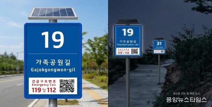 가로등이 없는 남측 구간에는 범죄예방환경설계(CPTED) 개념을 적용한 조명형 기초번호판을, 가로등이 설치된 북측 구간에는 일반형 기초번호판을 설치했다.