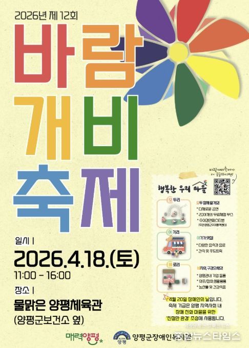 한편, 이번 축제 수익금은 양평 지역 내 장애 친화적 환경 조성을 위한 ‘친절한 환경’ 기금으로 사용될 예정이며, 자세한 사항은 양평군장애인복지관 누리집에서 확인할 수 있다.