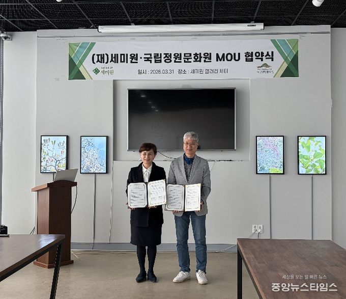 (중앙뉴스타임스 = 방재영 기자) 재단법인 세미원과 국립정원문화원은 지난 3월 31일 세미원에서 상호 협력을 위한 업무협약(MOU)을 체결했다.