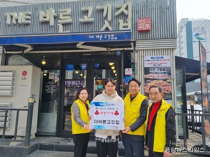 더바른고깃집은 지역 주민들이 꾸준히 찾는 숯불구이 전문점으로 선뜻 기부에 동참하였다.