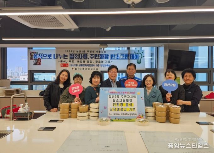 (중앙뉴스타임스 = 방재영 기자) 광명시 철산2동 주민자치회는 지난 1일 지역 주민들과 함께 저탄소·친환경 식재료로 만든 음식을 ‘광명마을냉장고(연서로 10)’에 기부하며 탄소중립 실천에 앞장섰다.