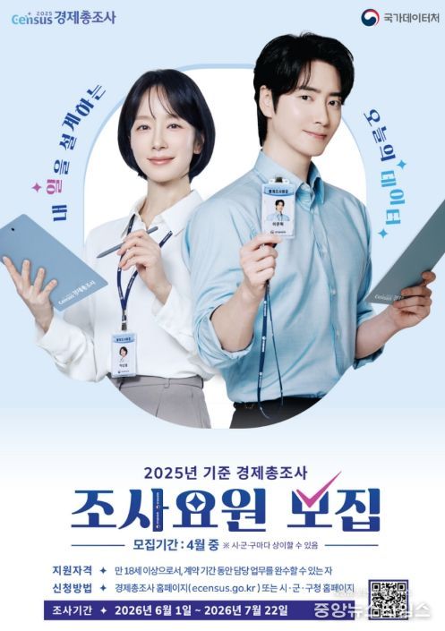 (중앙뉴스타임스 = 방재영 기자) 안성시는 국가데이터처(구 통계청)가 주관하는 '2025년 기준 경제총조사'의 원활한 추진을 위해 통계조사요원 80명을 모집한다고 밝혔다.
